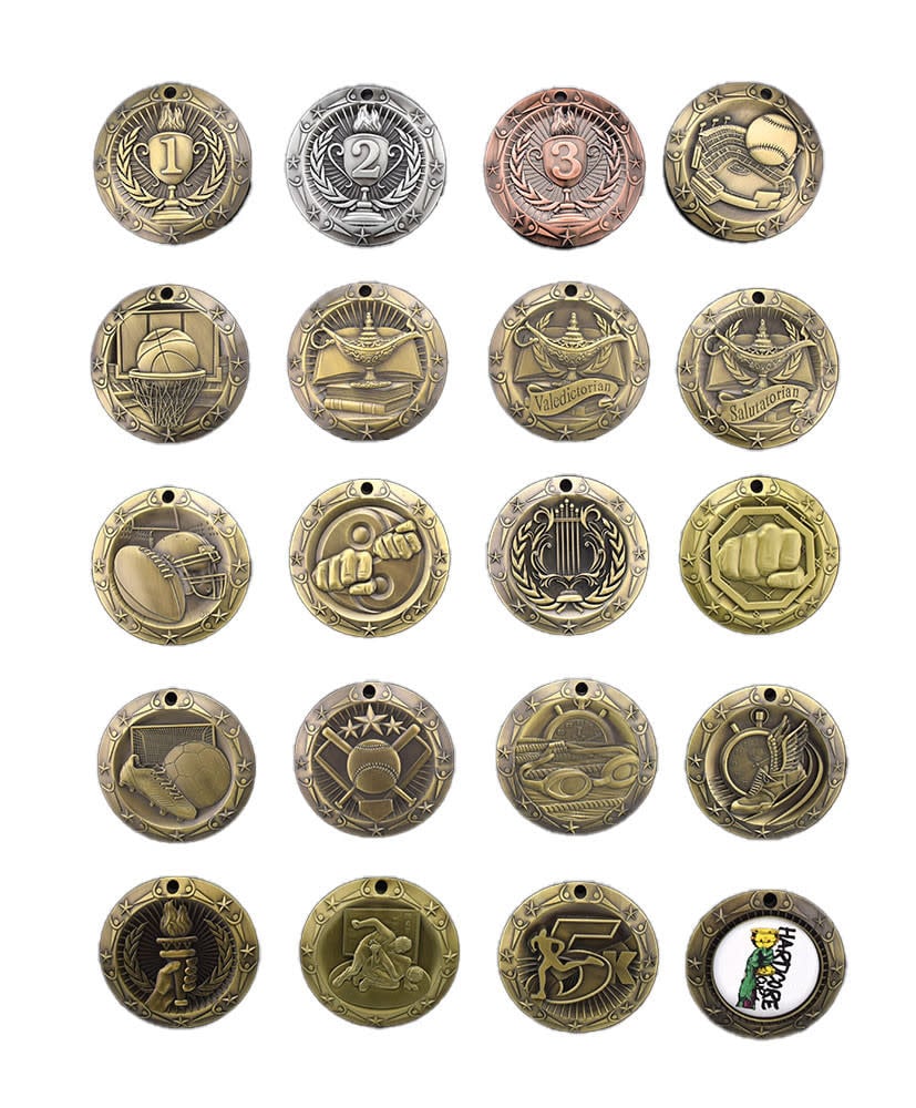 Crafted from heavy zinc alloy with an antique finish, the medal offers a solid feel and attractive appearance that recipients are proud to wear and display. Its large 3-inch diameter ensures the medal stands out during presentations while maintaining a traditional look that works for a wide variety of events.